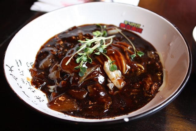 黑魯魯的炸醬麵來了,果然很黑